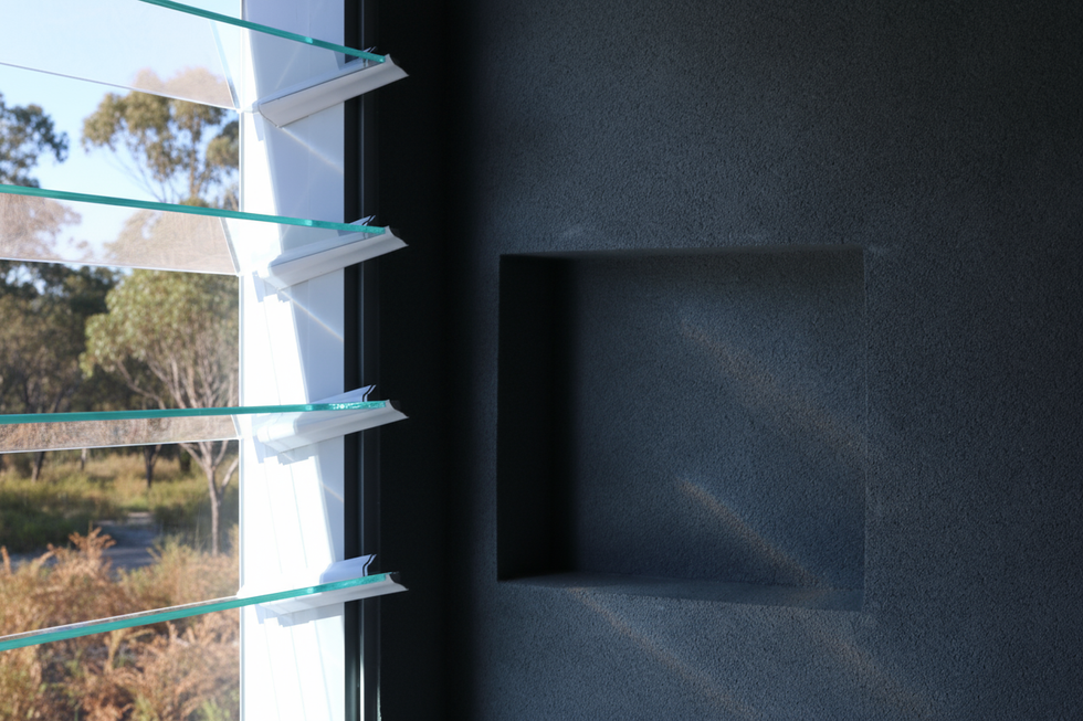 Client Modifications: Full-size fridge cavity, stainless splashback, fireplace location, aluminium windows & doors